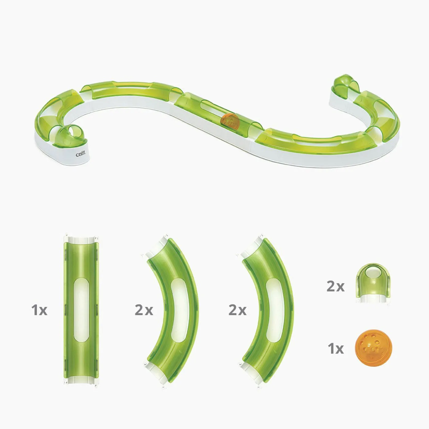 This set contains 1 x straight piece, 4 x corner pieces, 2 x end pieces and a ball