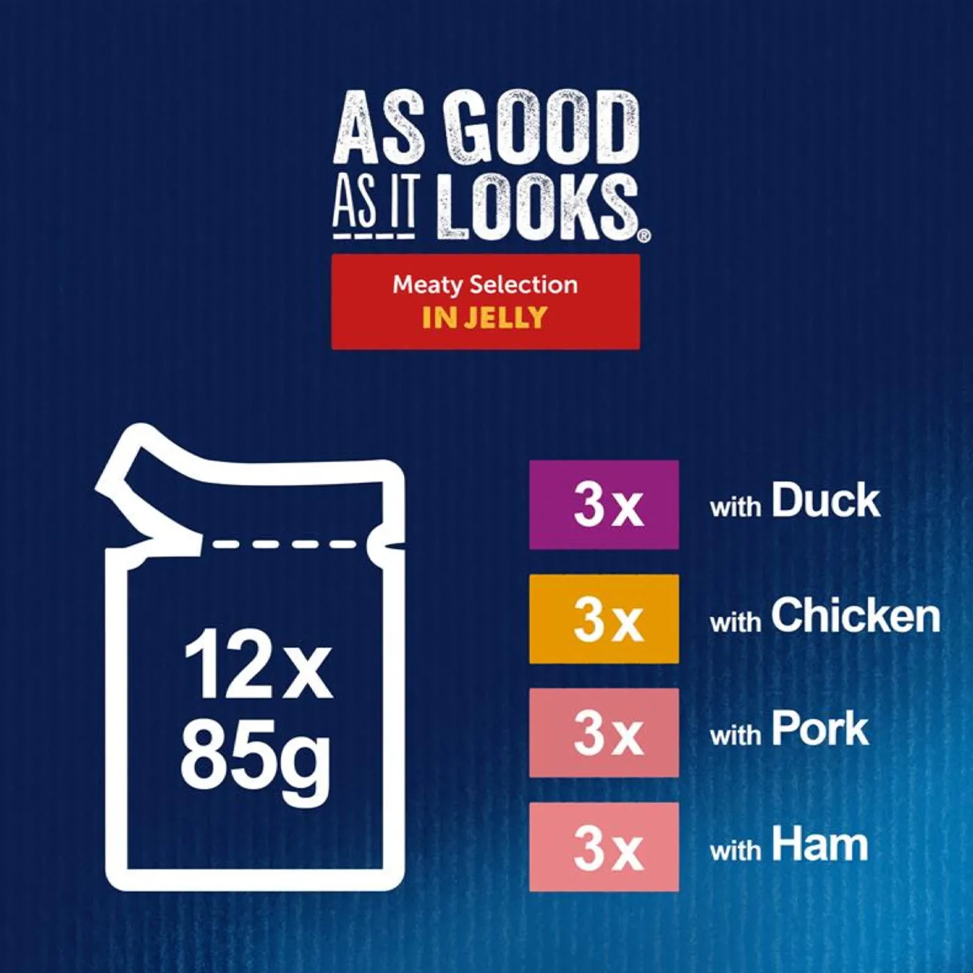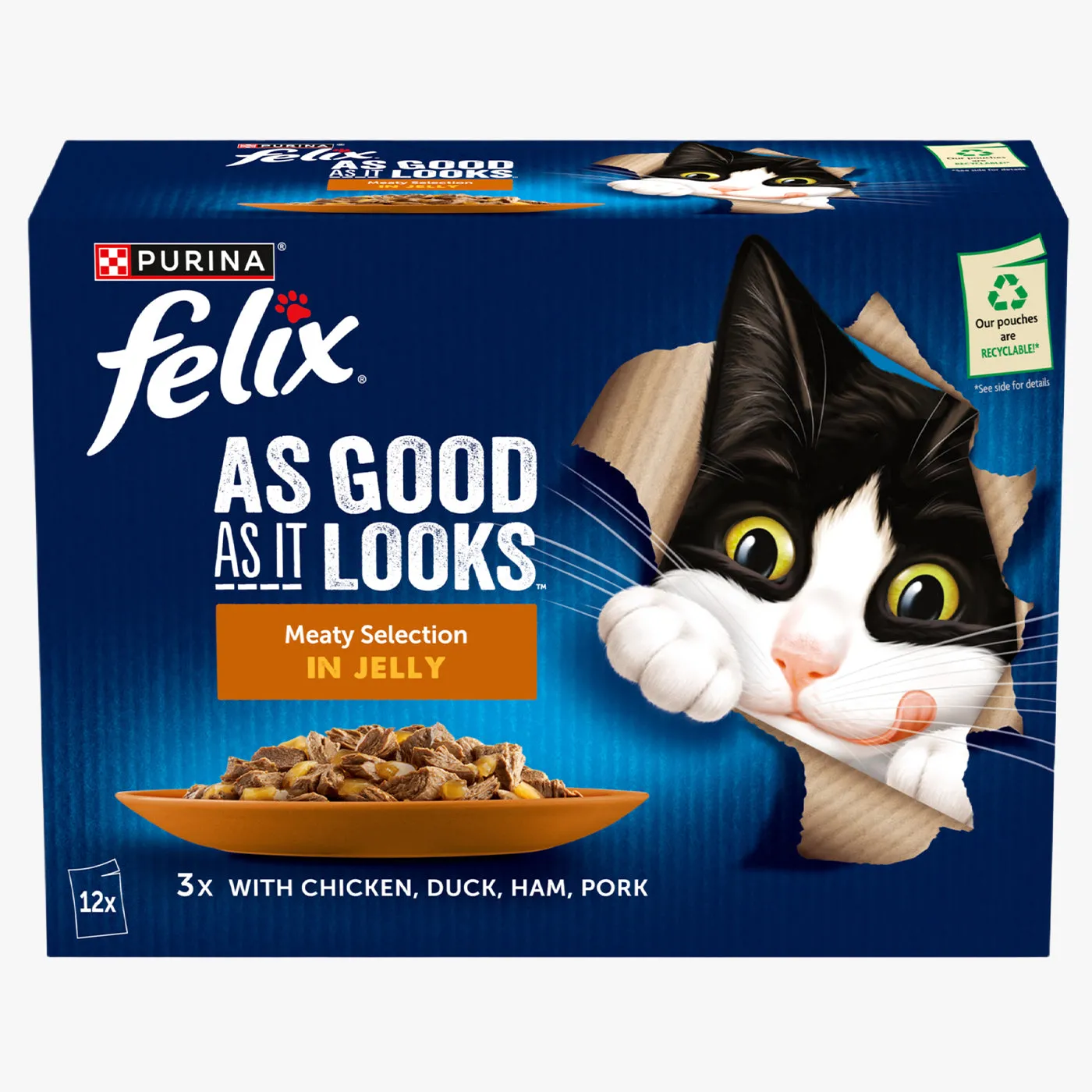 Felix As Good As it Looks Meaty Ham Selection Wet Cat Food in Jelly (12 x 85g)