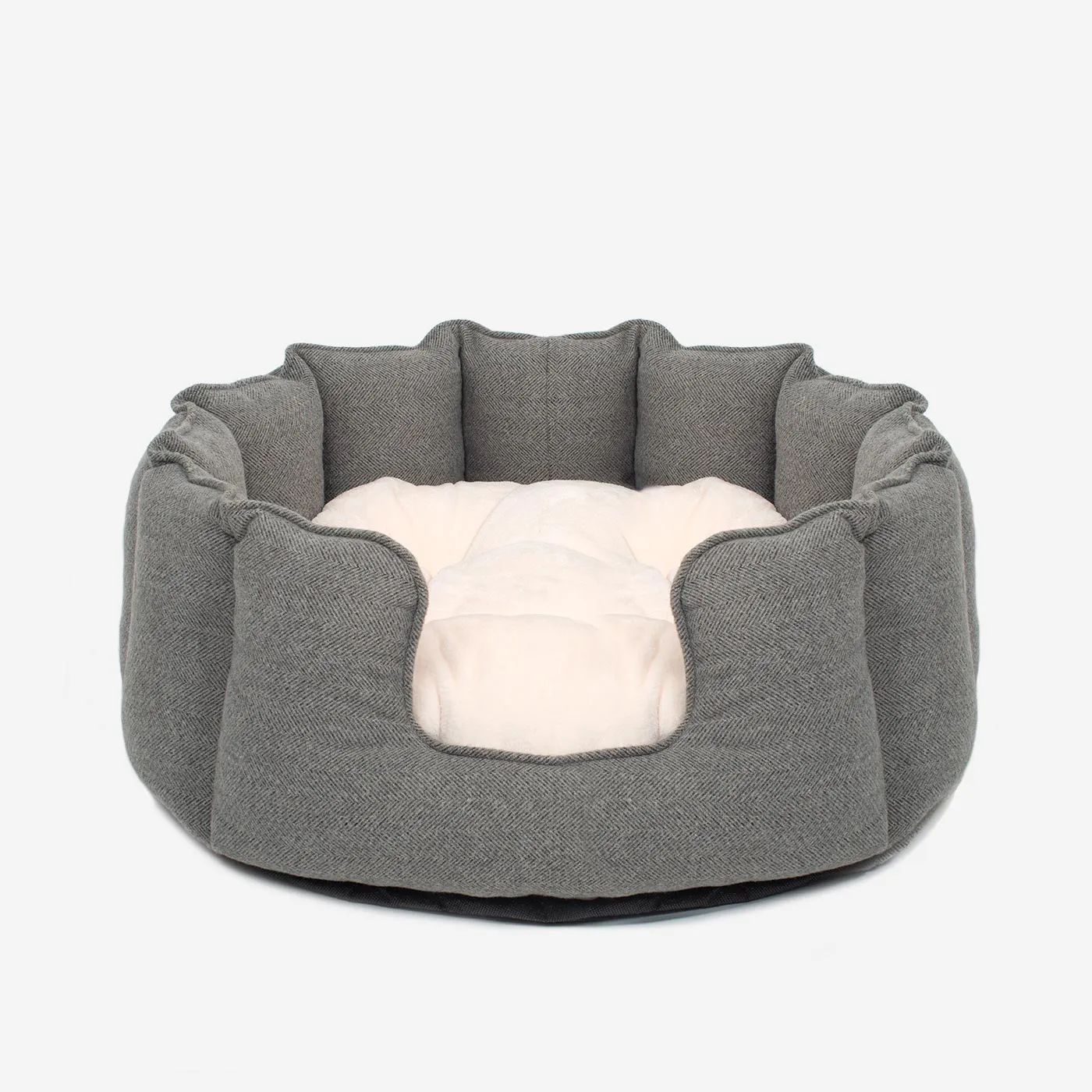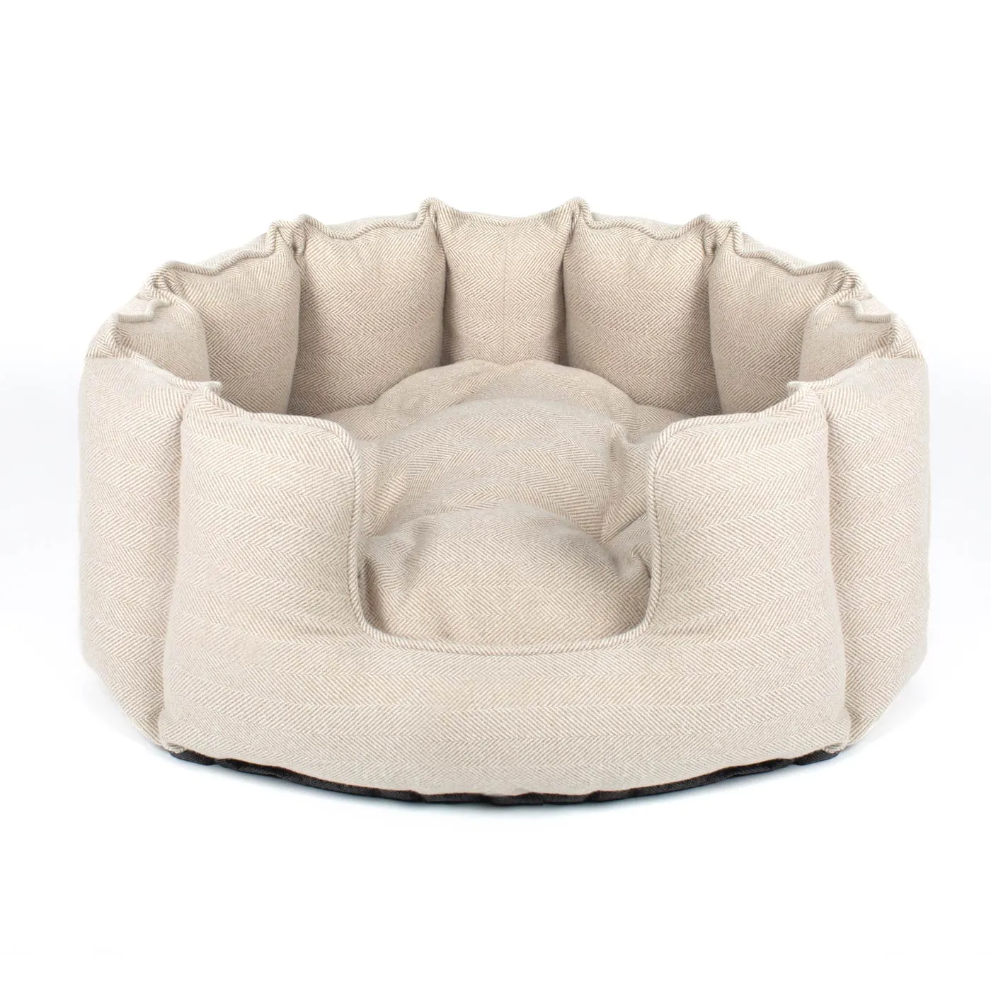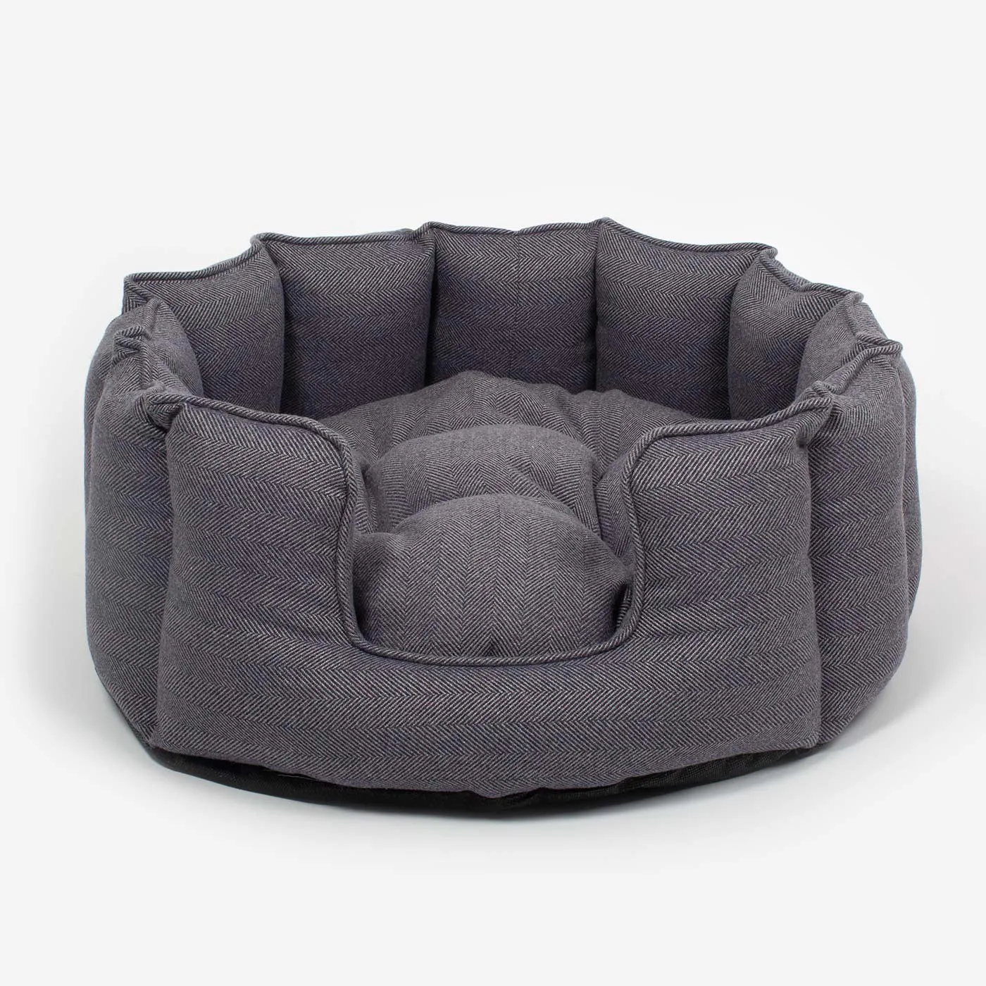 High Wall Bed For Cats With Removable Covers in Herringbone Tweed by Lords & Labradors