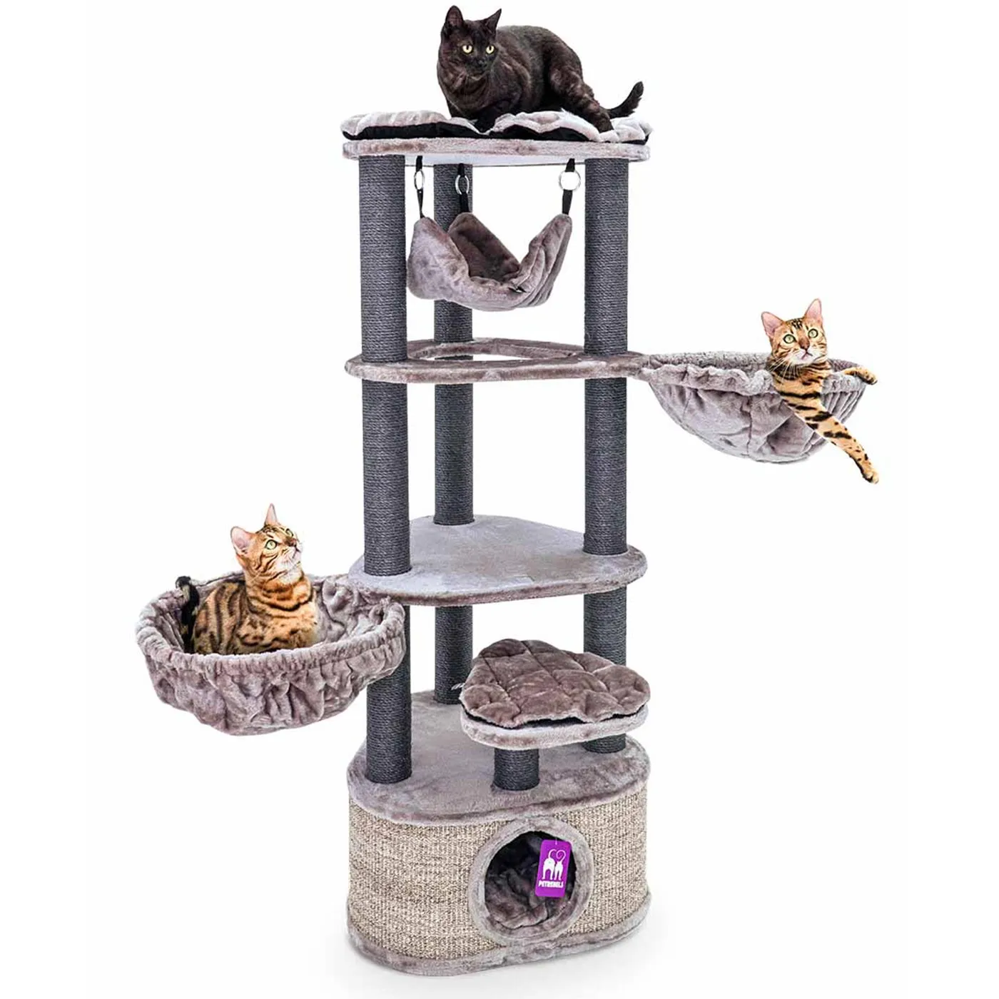 Made with three scratching posts with multiple levels