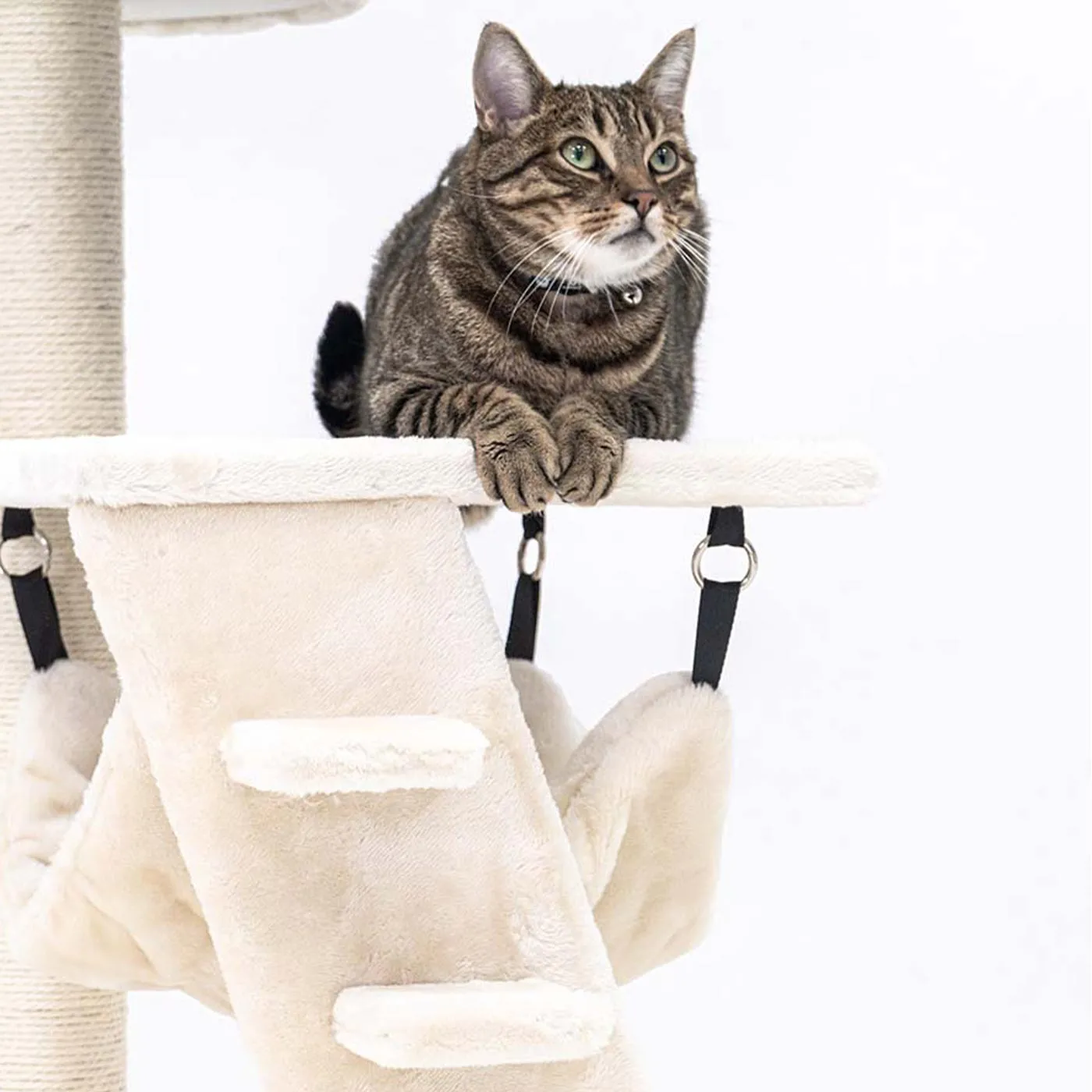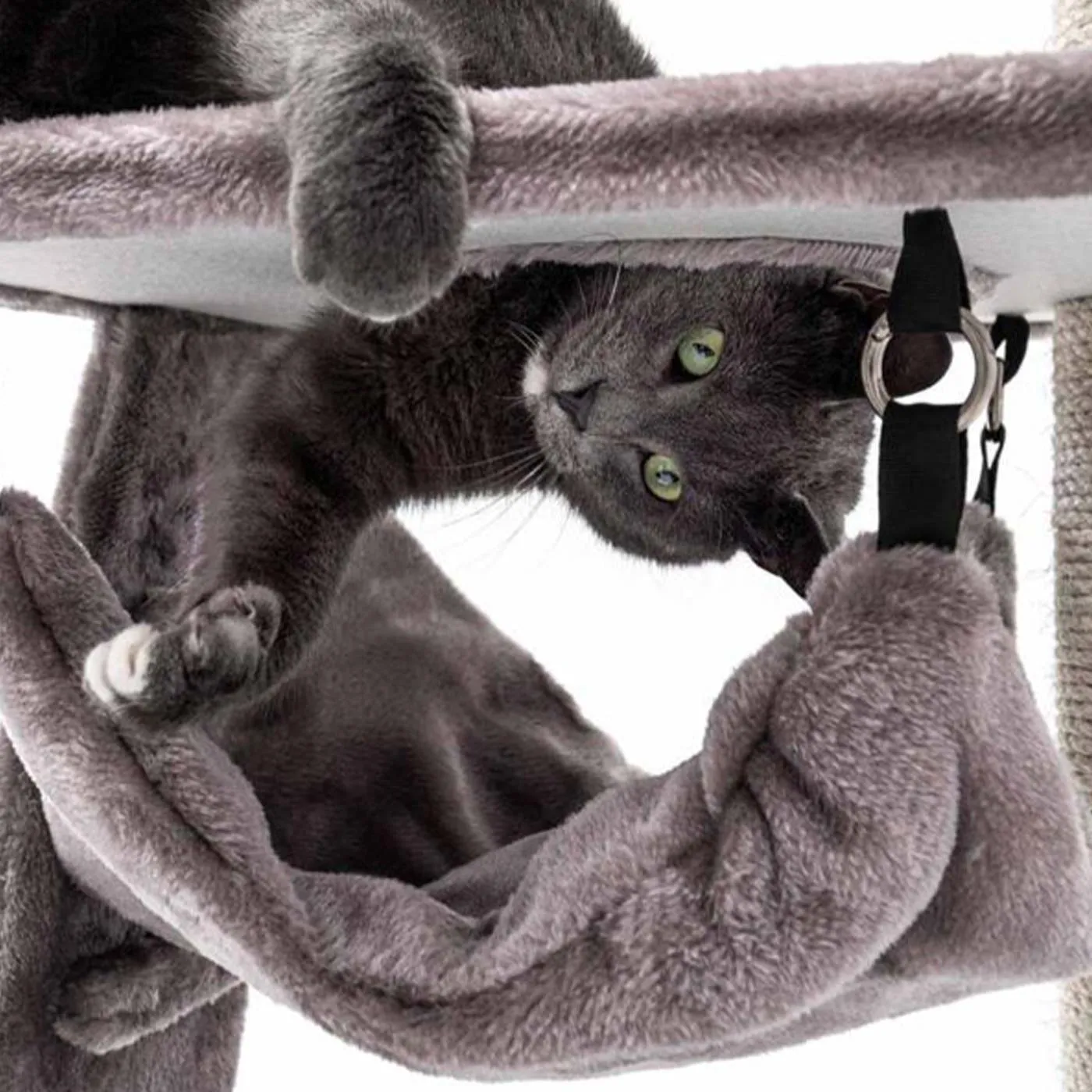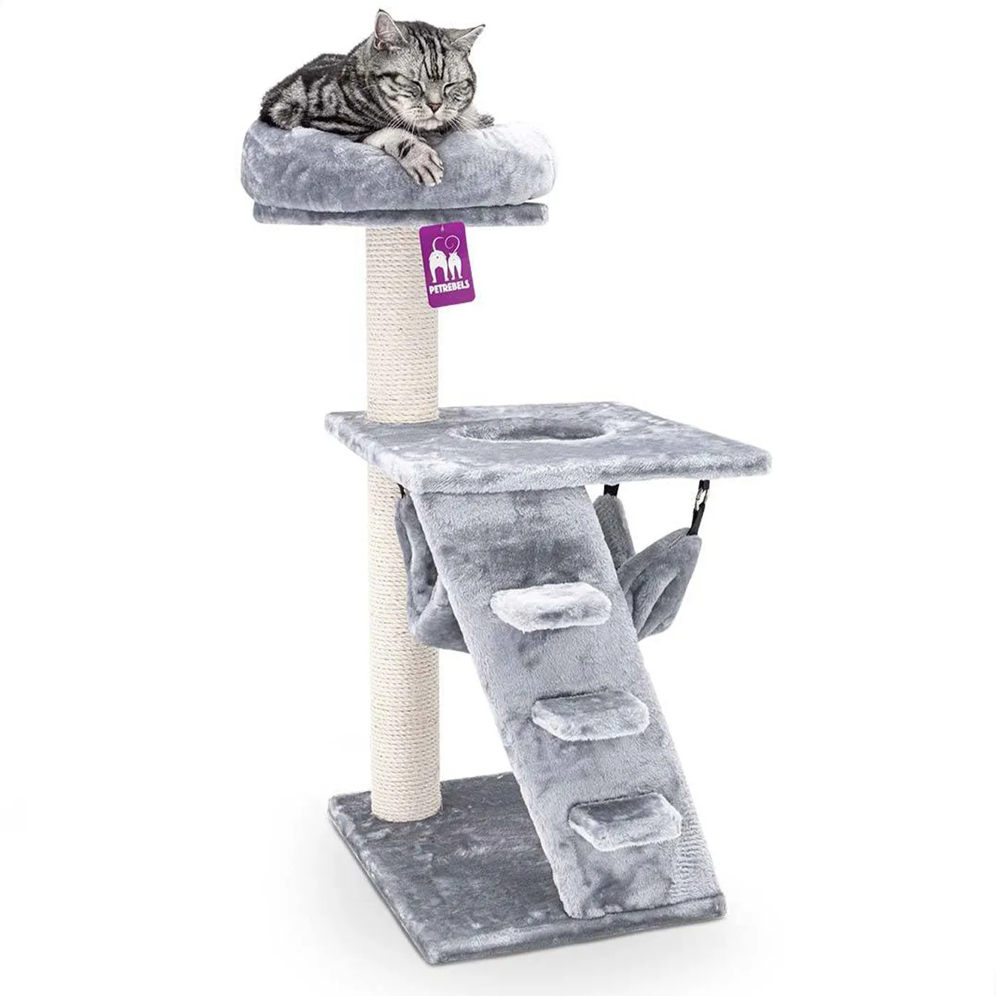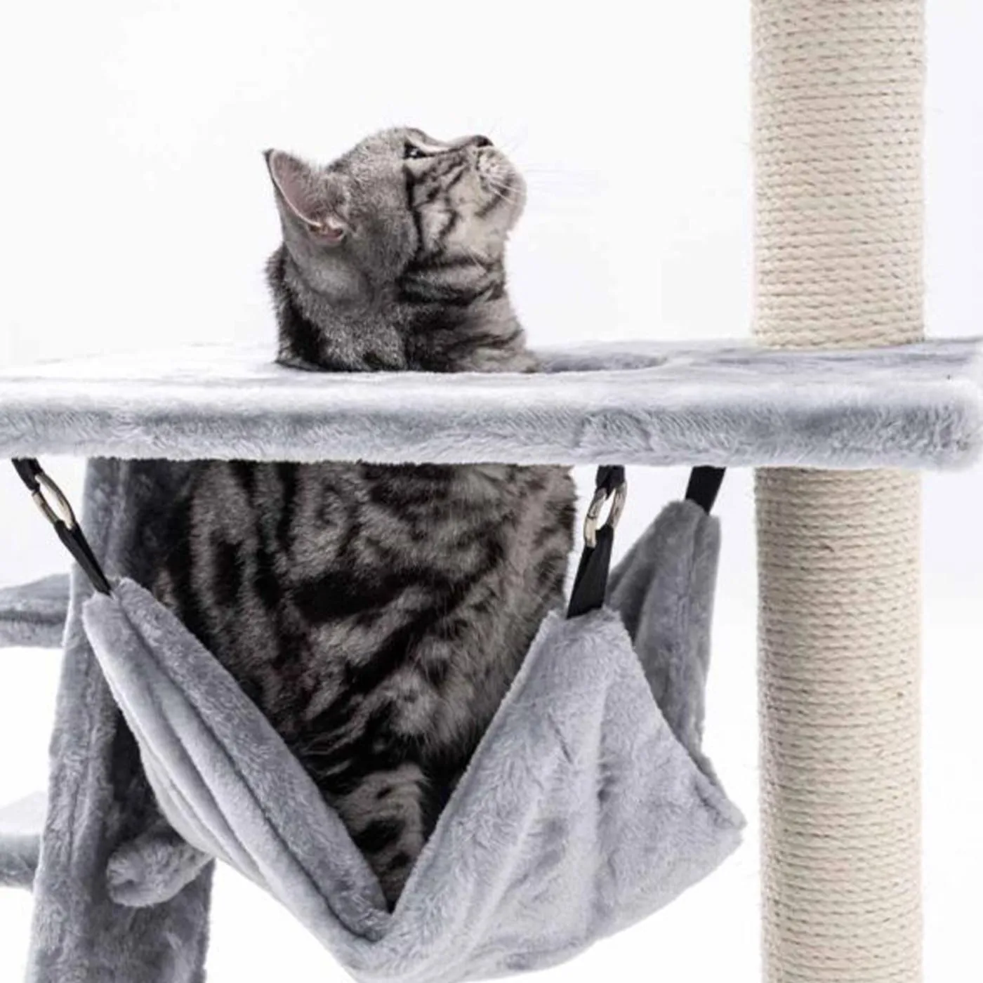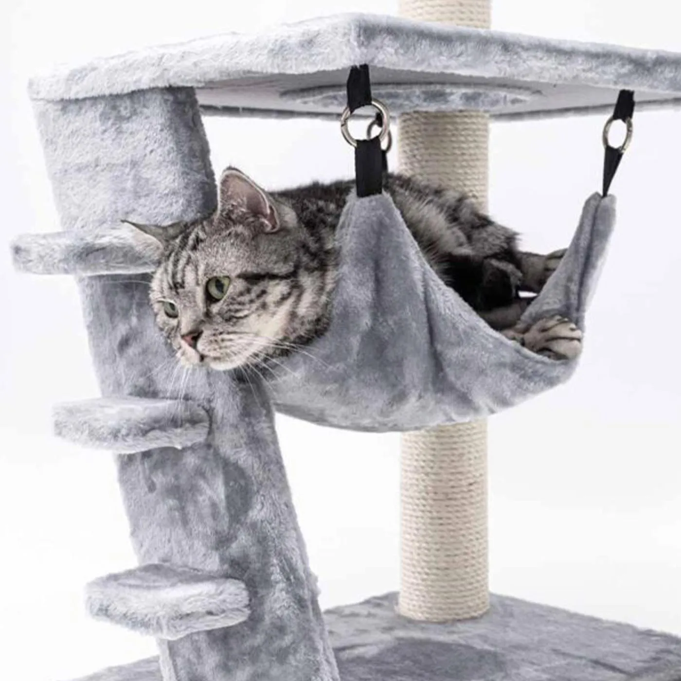 Scratch post with comfy resting spots and sleeping hammock