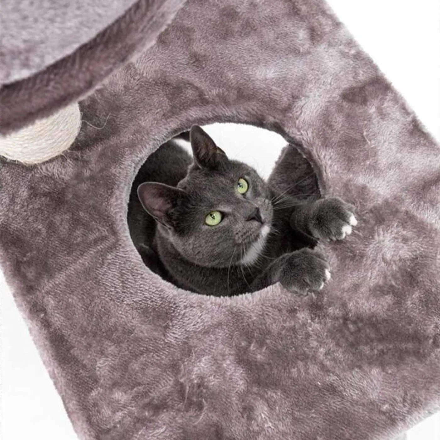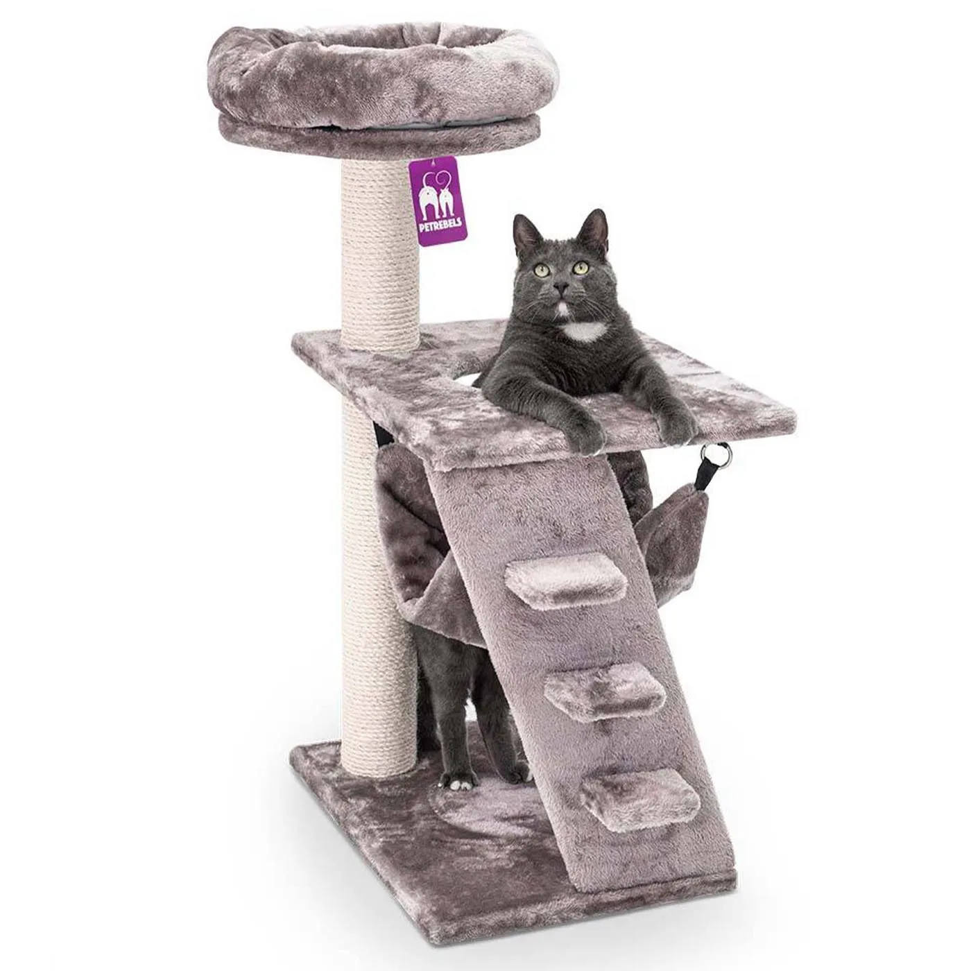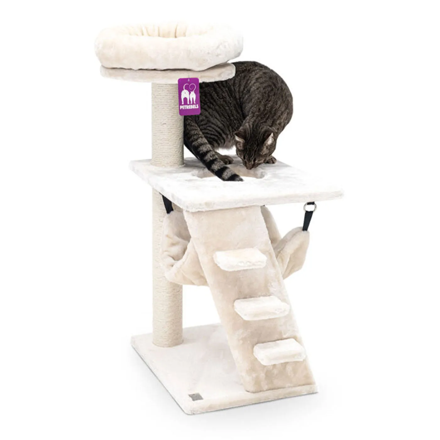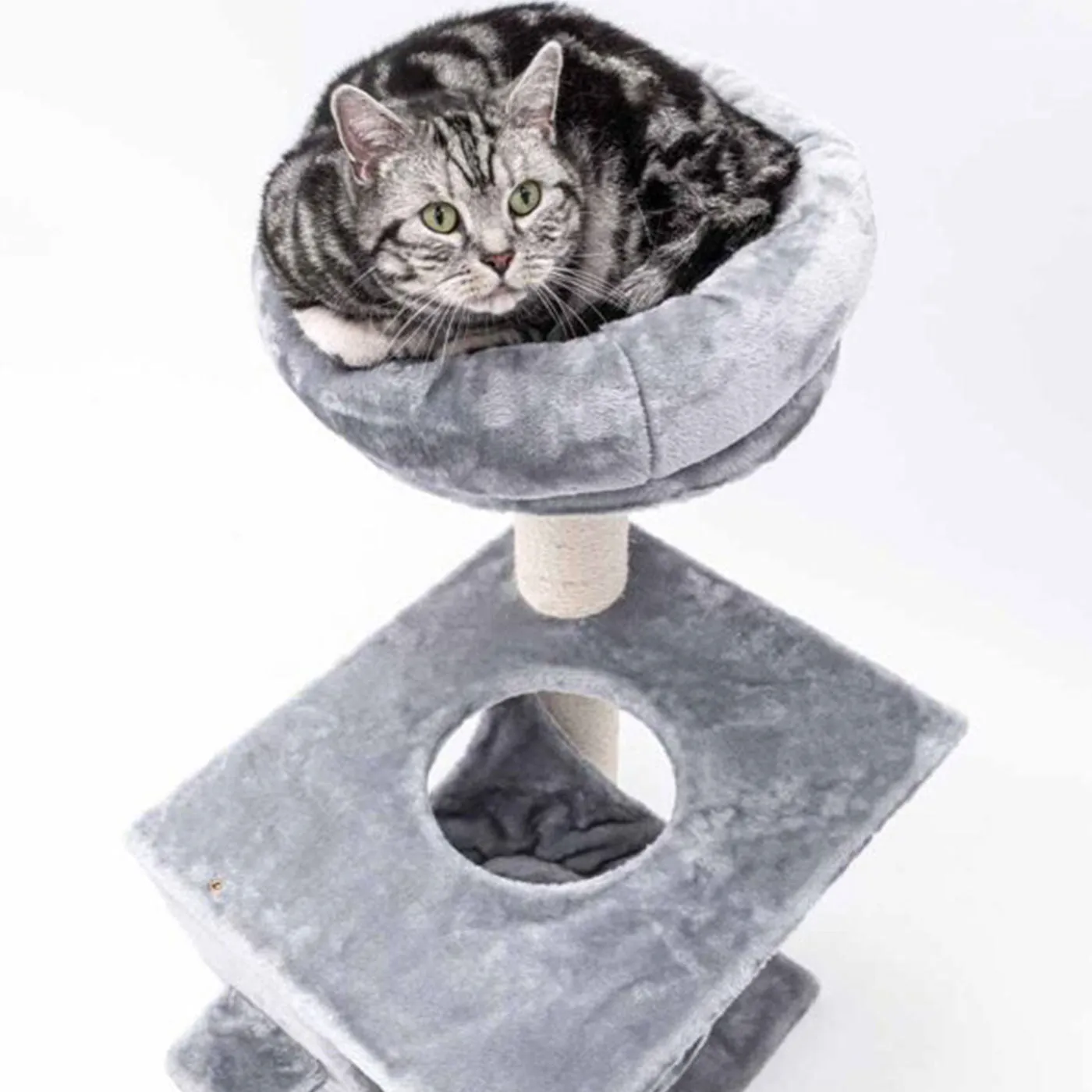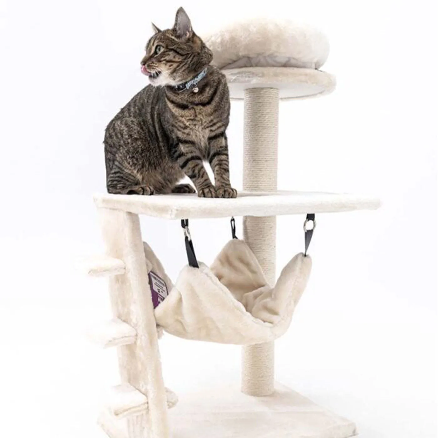 Scratch post with comfy resting spots and sleeping hammock