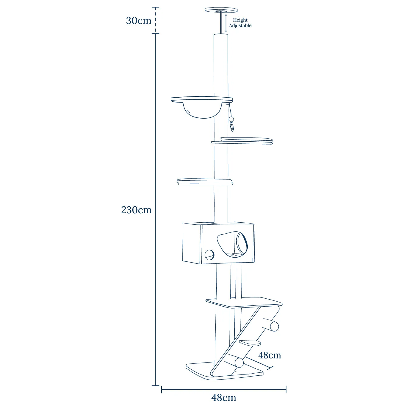 Features a clear hammock, hanging toy, steps and scratch post